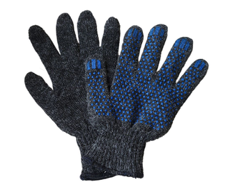 Перчатки полушерстяные двухслойные 7,5 класс вязки, черного цвета с двойным оверлоком. ПВХ рисунок "Точка" обеспечивает надежный захват. Перчатки предназначены для выполнения работ не связанных с большими механическими нагрузками на открытом воздухе при отрицательных температурах.