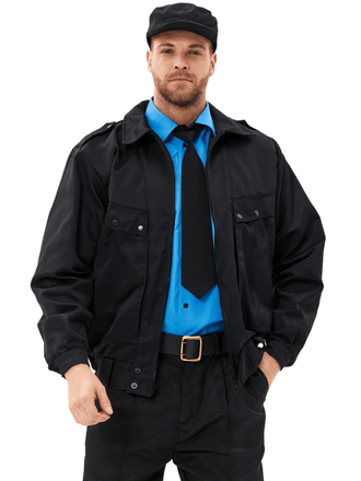 Снизу куртки - притачной пояс с широкими шлевками. Пояс застегивается патой на 2 кнопки. Боковые участки пояса стянуты на резинку.